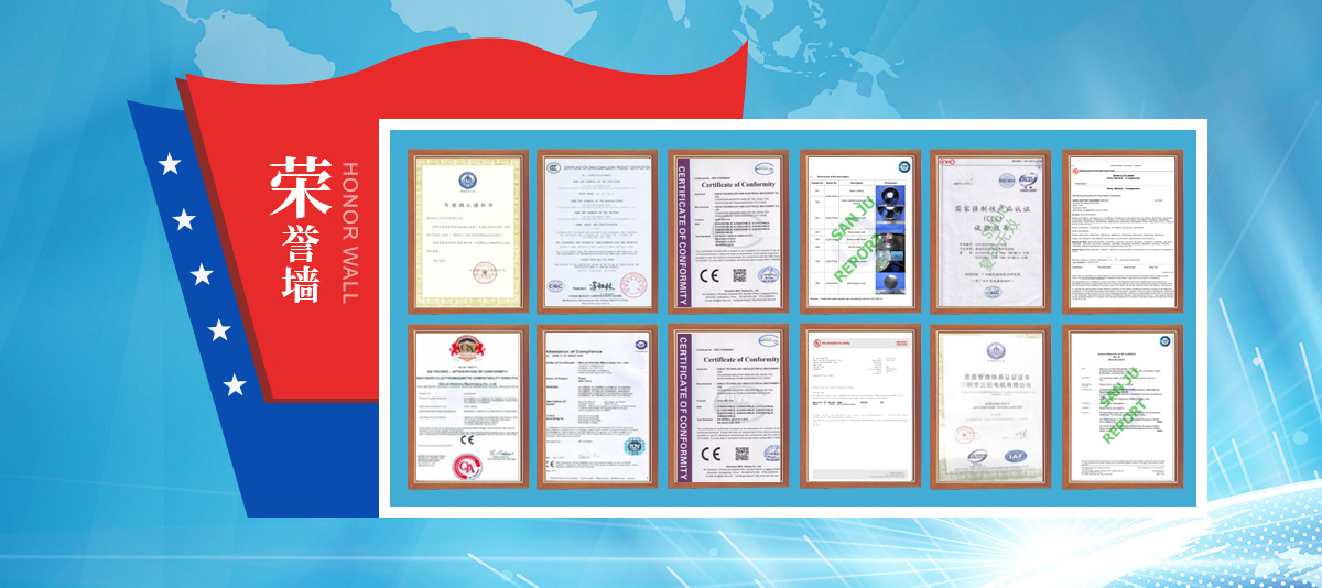 目前,憑借著不懈的創(chuàng)新,三巨電機(jī)擁有3個(gè)發(fā)明,15個(gè)新型專利證書,這充分證明了三巨電機(jī)對(duì)科研的重視不只是說說而已,而是真正地付出了努力,做到了知行合一。除此以外,三巨電機(jī)還獲得 了UL、CUL、ROHS等十多種國際認(rèn)證,產(chǎn)品質(zhì)量過硬,憑實(shí)力贏得用戶的信賴。