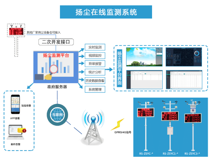 建大仁科揚塵監測系統是專門針對各種在建工程、大型工礦、水泥/化工等污染嚴重場所,進行環境監測的設備總稱,它由噪聲揚塵監測設備、網絡傳輸技術和管理應用軟件三大部分組成,以實現對現場環境狀況的監測、查看與管理。