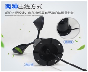 (2)風速風向傳感器采用前沿產品設計,有底出線和側出線兩種出線方式,底部出線有更高的防雨雪性能。