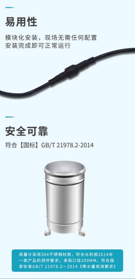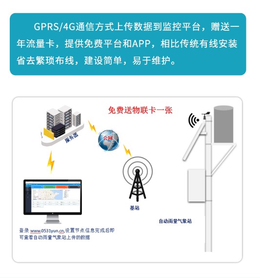 默認脈沖當量:0.5mm 可上傳瞬時雨量、日雨量、當前雨量及累計雨量值。 |